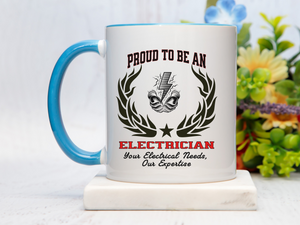 Light up your day with the “PROUD TO BE AN ELECTRICIAN” Accent Coffee Mug, featuring the bold slogan: “Your Electrical Needs, Our Expertise.” Created by New Edge Gifts and Novelties, this durable and stylish ceramic mug is the perfect way for electricians to energize their mornings with pride in their craft.