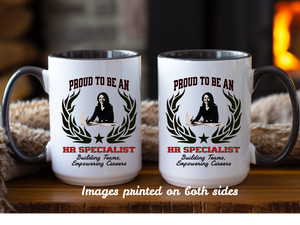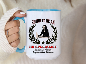Celebrate your passion for people and organizational growth with the “PROUD TO BE AN HR SPECIALIST” Accent Coffee Mug, featuring the empowering slogan: “Building Teams, Empowering Careers.” Crafted by New Edge Gifts and Novelties, this ceramic mug is the perfect way to honor the essential role HR specialists play in creating cohesive teams and fostering career development.