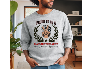 Wear your passion for healing and relaxation with pride in our “Proud to be a MASSAGE THERAPIST” unisex sweatshirt! Whether you're in the studio, heading to a wellness retreat, or off-duty and cozy at home, this sweatshirt delivers both comfort and meaning.