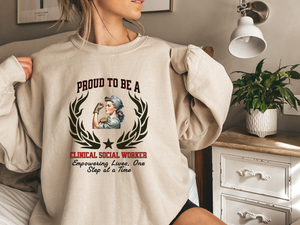 Celebrate the compassion, dedication, and impact of social work with this cozy Unisex Clinical Social Worker Sweatshirt, featuring the inspiring slogan “Proud to be a CLINICAL SOCIAL WORKER. Empowering Lives, One Step at a Time.” Designed for those who support healing and growth every day, this pullover is a symbol of strength, empathy, and resilience.