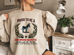 Unisex Democrat Sweatshirt – “Proud to be a DEMOCRAT” Slogan | Middle Class & Working Families Political Pullover