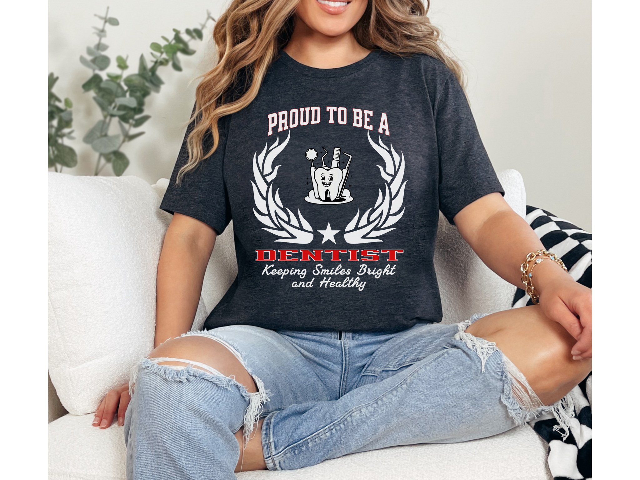 Show off your dental pride with this bold "DENTIST" slogan T-shirt — perfect for professionals who brighten smiles daily! Whether you're pulling teeth or polishing pearly whites, this comfortable, unisex tee lets everyone know you're all about oral health. Made from soft, breathable cotton, it’s ideal for everyday wear at the clinic, dental school, or out and about. Great gift for dental hygienists, DDS students, or any smile specialist!