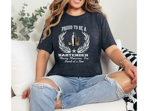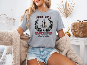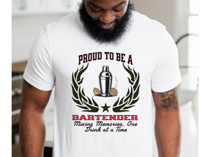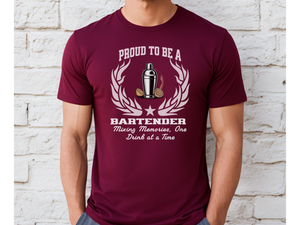 Raise your glass to style and skill with this "Proud to Be a Bartender" unisex T-shirt, featuring the standout slogan: