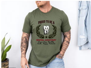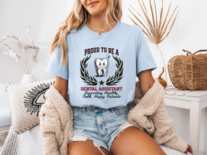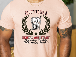 Bright smiles start with your support! Our "Proud to be a Dental Assistant" unisex T-shirt celebrates the essential role you play in every patient’s oral health journey. Featuring the uplifting slogan "Supporting Healthy Teeth, Happy Patients," this tee is perfect for dental professionals who bring comfort, care, and confidence to the chair.
