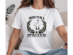 Show pride in your passion for great service with this "Proud to be a Waiter – Serving Smiles with Every Plate" unisex T-shirt. Whether you're working the lunch rush, serving dinner with flair, or providing top-tier hospitality day after day, this tee is the perfect way to express your dedication. Comfortable and stylish, it’s ideal for on-the-job wear or off-the-clock relaxation.