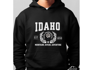 Fuel your wild side and rep the Gem State with our Idaho State Legacy Unisex Hoodie. Featuring the bold slogan "Mountains, Rivers, Adventure", this hoodie is made for those who live to explore—whether it’s hiking rugged trails, casting lines in crystal-clear rivers, or chasing sunsets over the Sawtooths.
