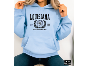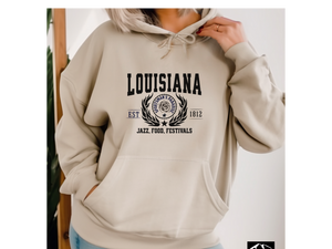 Made with soft fleece and a relaxed unisex fit, it’s perfect for cool festival nights, riverside strolls, or simply showing off your state pride with comfort and color. Whether you're a local, a music lover, or someone who just lives for flavor—this hoodie brings the heart of Louisiana wherever you go.