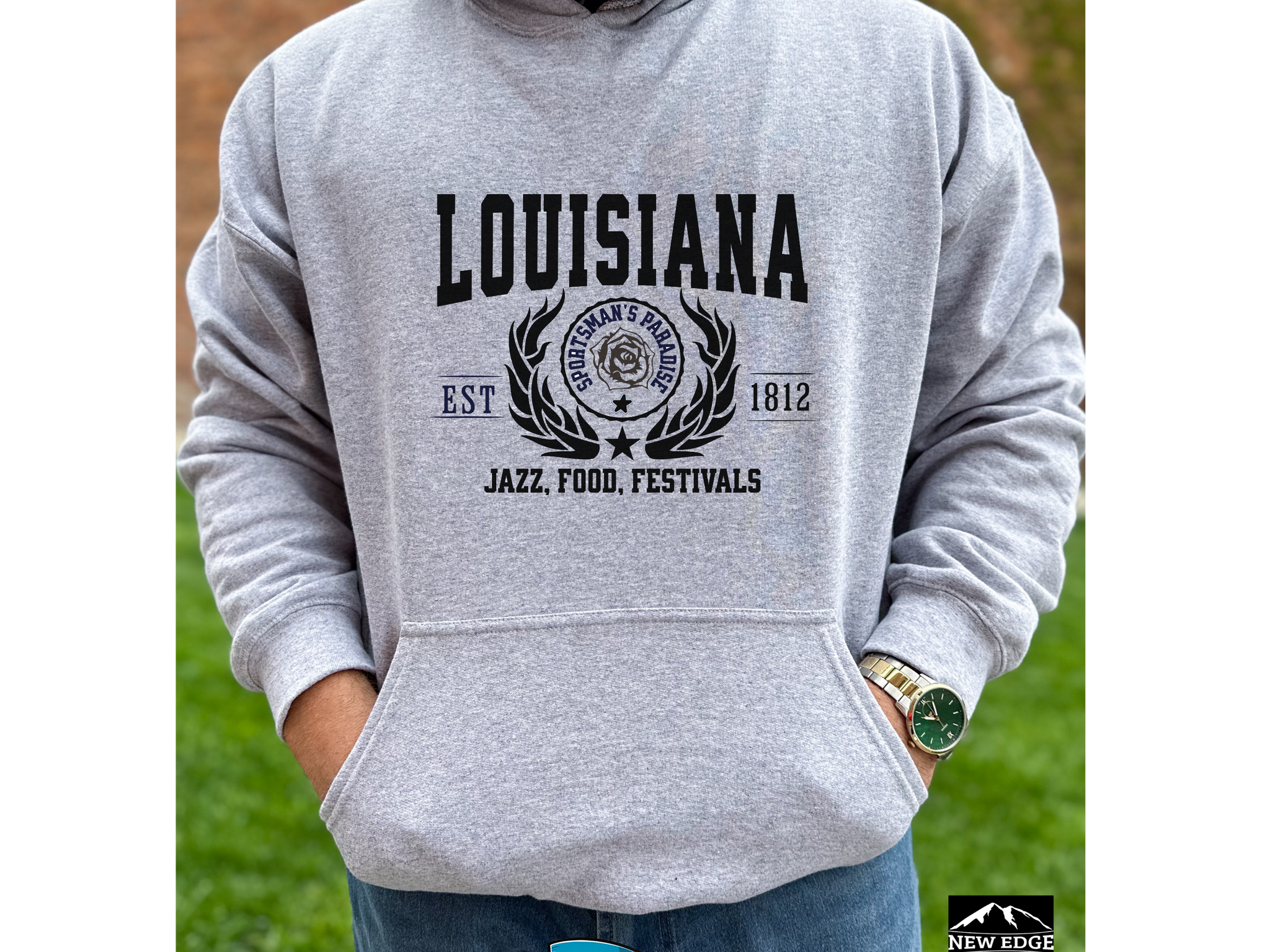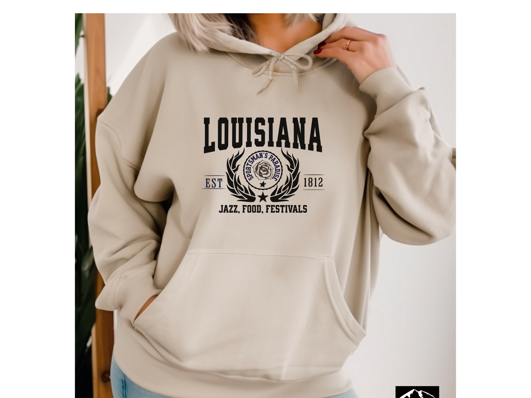Turn up the soul and celebrate the spirit of the Bayou with our Louisiana State Legacy Unisex Hoodie, featuring the vibrant slogan "Jazz, Food, Festivals". Inspired by the rhythm of New Orleans, the spice of Cajun cuisine, and the joy of year-round celebrations, this hoodie is your wearable tribute to Louisiana’s culture and flair.