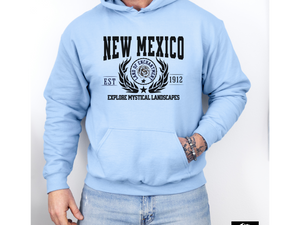 Embark on a journey through the Land of Enchantment with our State Legacy Unisex Hoodie! Featuring the evocative slogan "New Mexico State, Explore Mystical Landscapes", this hoodie captures the spirit of New Mexico’s breathtaking deserts, towering mesas, and star-filled skies.