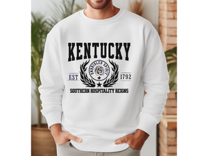 Wrap yourself in Bluegrass warmth and charm with our State Legacy Unisex Sweatshirt, celebrating everything that makes Kentucky legendary. With the heartfelt slogan “Southern Hospitality Reigns,” this cozy crewneck nods to the traditions of front porch welcomes, rich bourbon, rolling hills, and Derby pride.