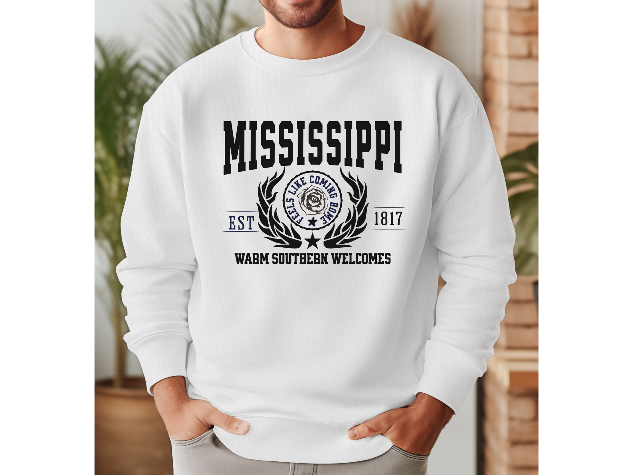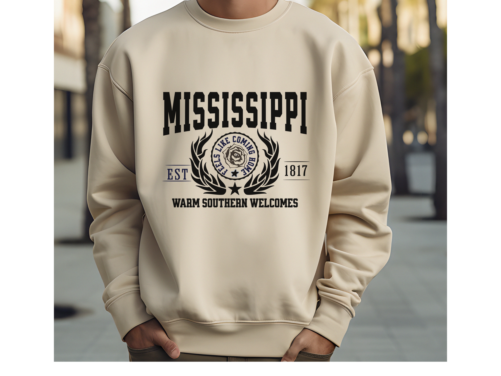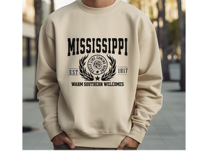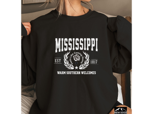 Step into true Southern charm with this State Legacy Unisex Sweatshirt, featuring the heartfelt slogan “Warm Southern Welcomes.” Whether you’re sipping sweet tea on the porch or repping your roots on the go, this cozy crewneck brings Mississippi’s soul, hospitality, and history to life.