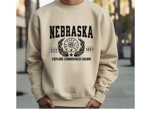 Celebrate the heart of the heartland with this State Legacy Unisex Sweatshirt, proudly featuring the slogan “Explore Cornhusker Charm.” From golden fields and college pride to small-town warmth and big skies, this design captures everything that makes Nebraska a true gem of the Midwest.