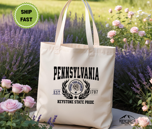 Celebrate the rich heritage of the Keystone State with our Pennsylvania State “Keystone State Pride” Cotton Canvas Tote Bag! Inspired by Pennsylvania’s historic landmarks, rolling hills, and vibrant cities, this eco-friendly tote is perfect for proud locals, travelers, and history lovers alike. Whether you’re exploring Philadelphia, wandering through Amish country, or running daily errands, this durable tote adds timeless state pride to your day.
