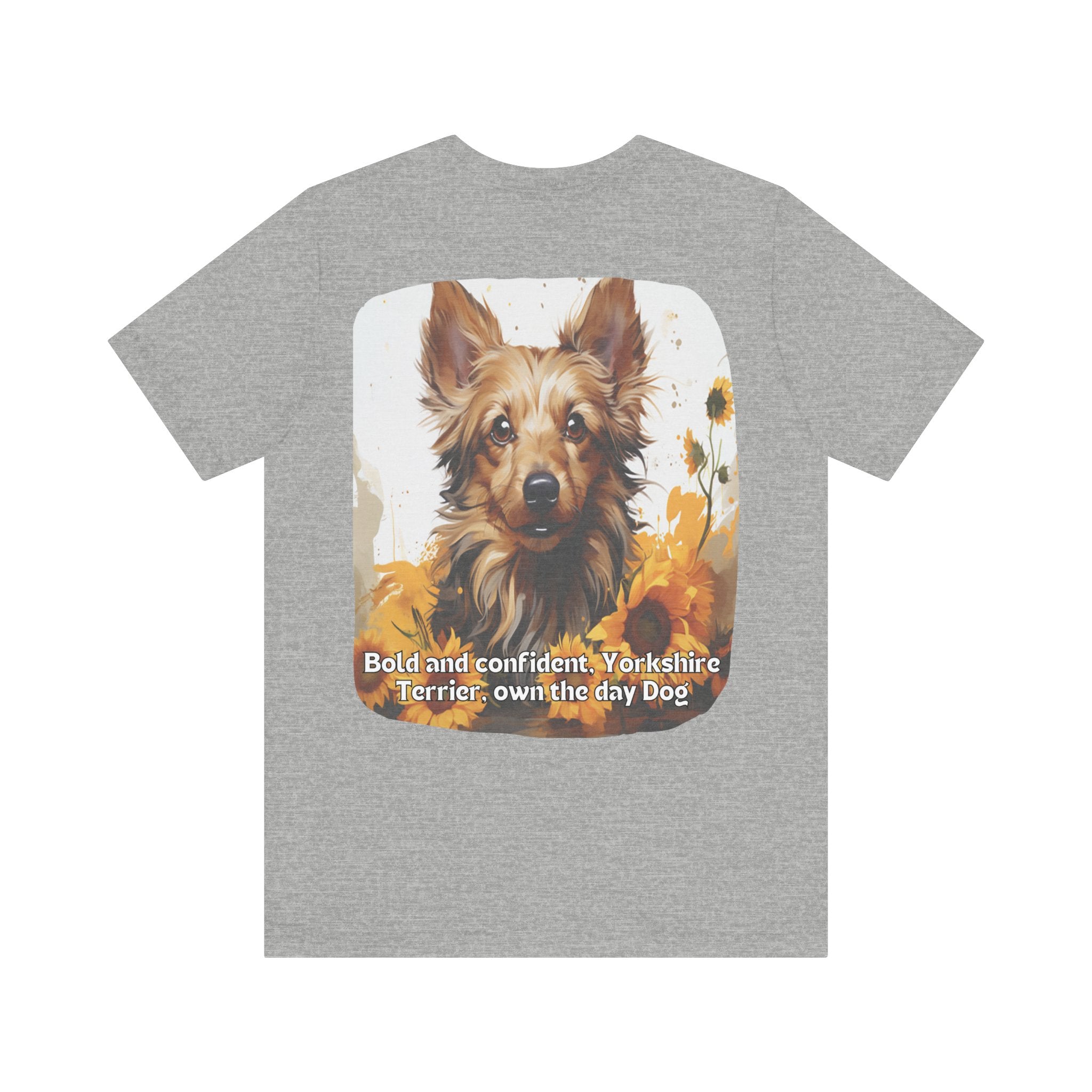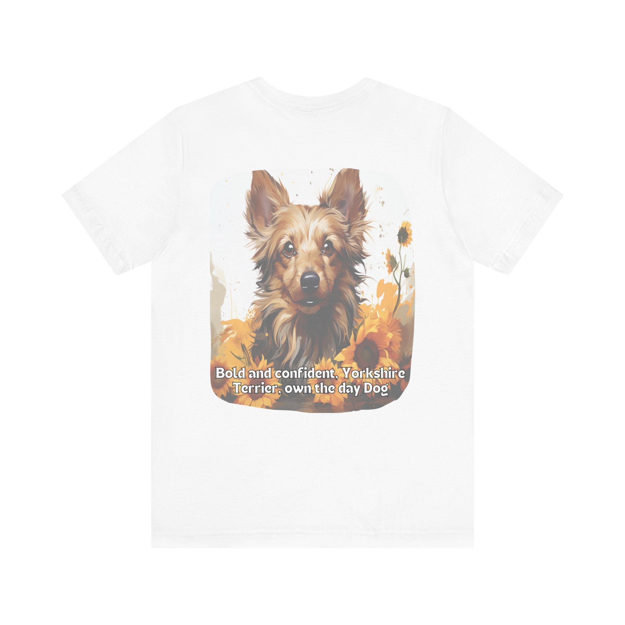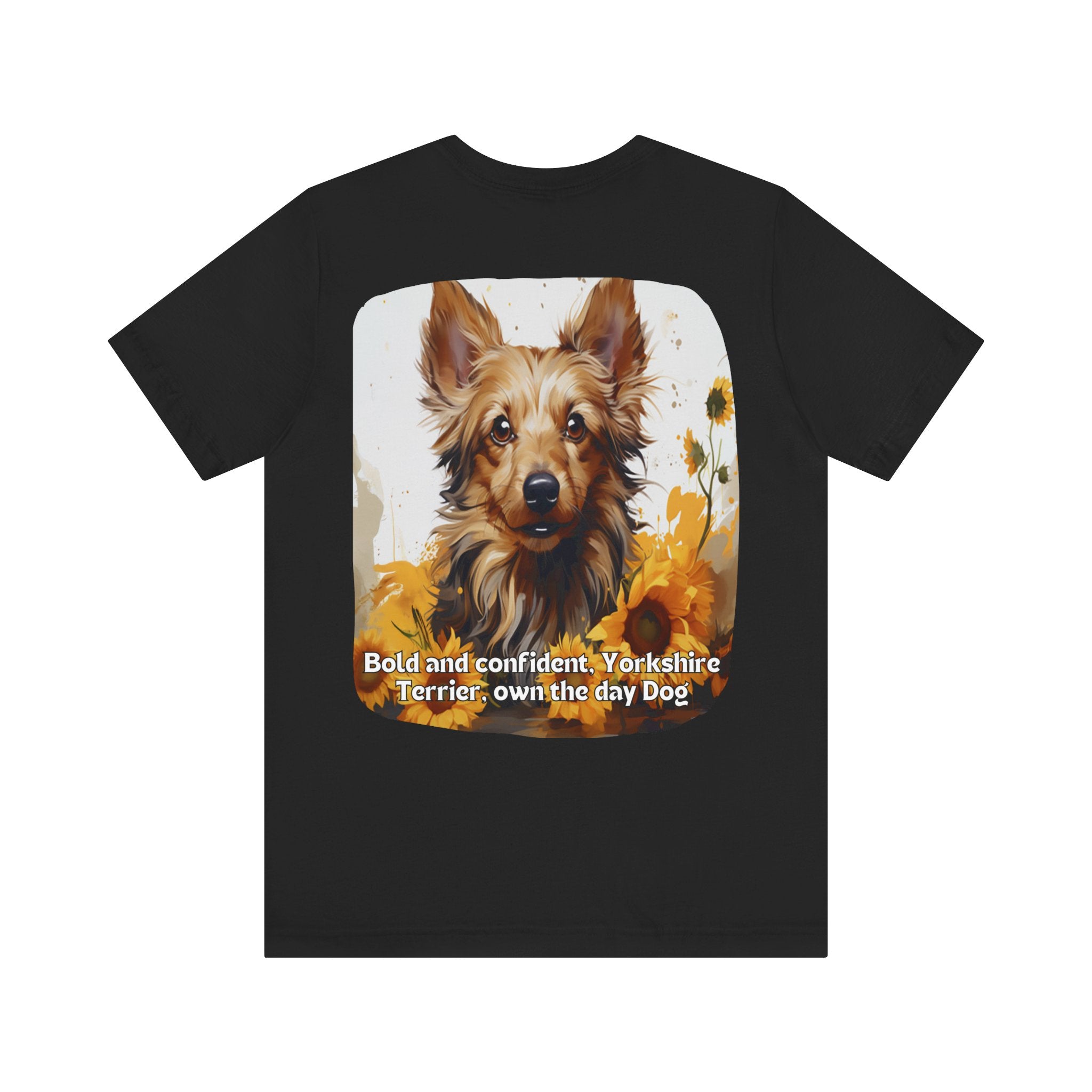 Embrace the bold and confident spirit of the Yorkshire Terrier with this Sunflower Dog unisex t-shirt! Featuring a stunning front and back design, this tee showcases a proud Yorkie surrounded by beautiful sunflowers—symbolizing warmth, joy, and strength. Whether you're a dedicated Yorkie lover or simply admire their fearless attitude, this shirt lets you own the day in style. Made for comfort and versatility, it's the perfect gift for dog lovers, Yorkie owners, and anyone who loves unique pet-inspired fashion.