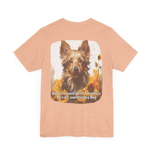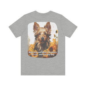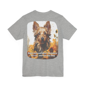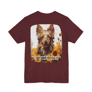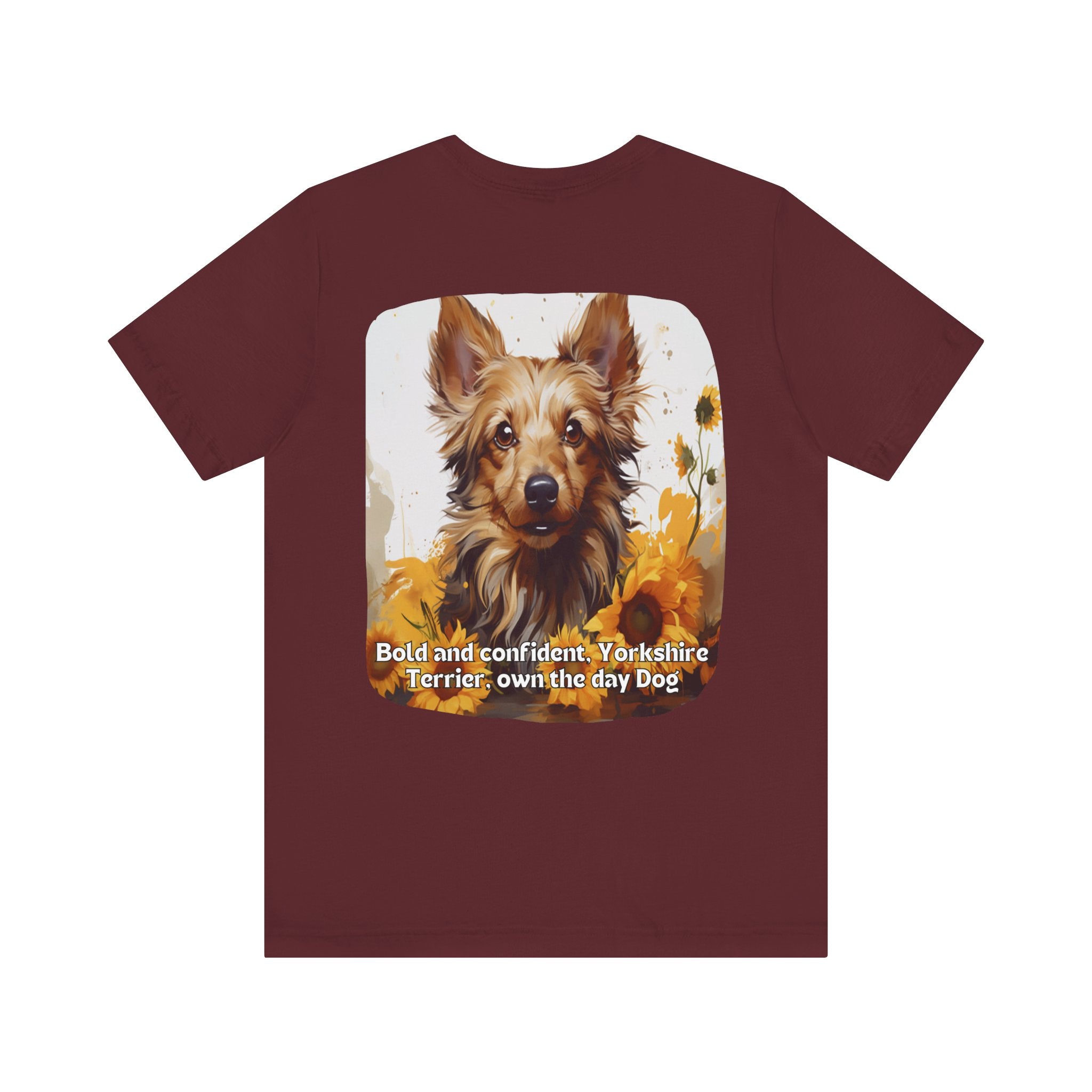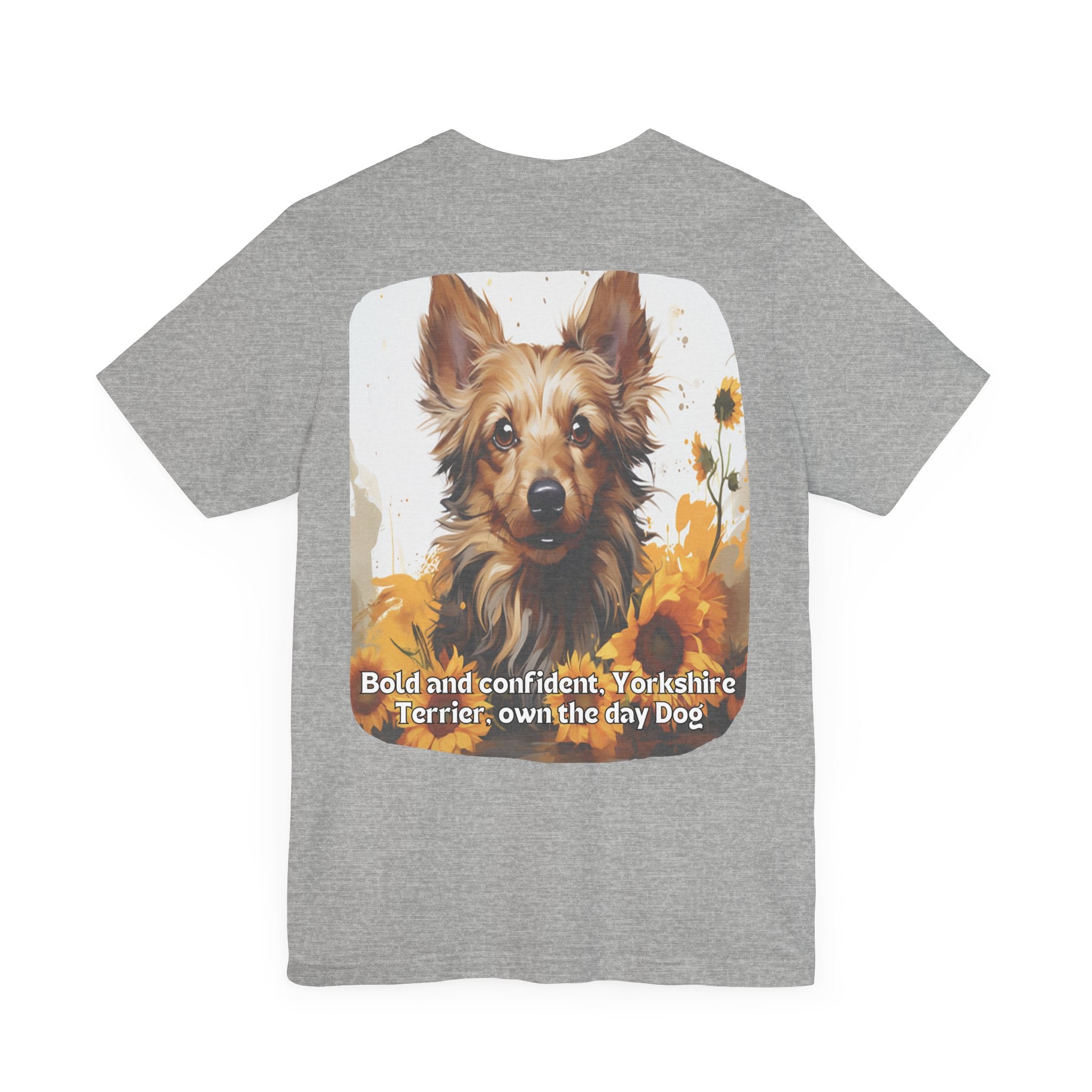 Embrace the bold and confident spirit of the Yorkshire Terrier with this Sunflower Dog unisex t-shirt! Featuring a stunning front and back design, this tee showcases a proud Yorkie surrounded by beautiful sunflowers—symbolizing warmth, joy, and strength. Whether you're a dedicated Yorkie lover or simply admire their fearless attitude, this shirt lets you own the day in style. Made for comfort and versatility, it's the perfect gift for dog lovers, Yorkie owners, and anyone who loves unique pet-inspired fashion.