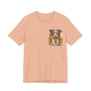 Celebrate the brilliant spirit of the Australian Shepherd with this sunflower-themed unisex T-shirt! Featuring the motivational slogan "Explore, Lead, Inspire like an Australian Shepherd" on the front and a vibrant full-back design of an Aussie herding through golden sunflowers, this tee embodies the breed’s unmatched intelligence, work ethic, and loyal heart.