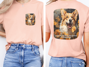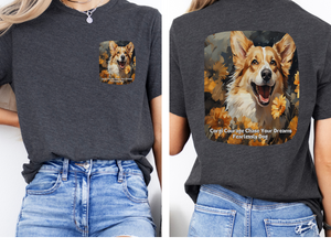 Celebrate the unstoppable spirit of the Corgi with this sunflower-themed unisex T-shirt! Featuring the empowering slogan "Corgi Courage: Chase Your Dreams Fearlessly" on the front and a vibrant full-back design of a determined Corgi dashing through golden sunflowers, this tee embodies the breed’s big-dog attitude in a small, mighty package.