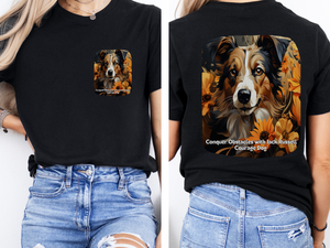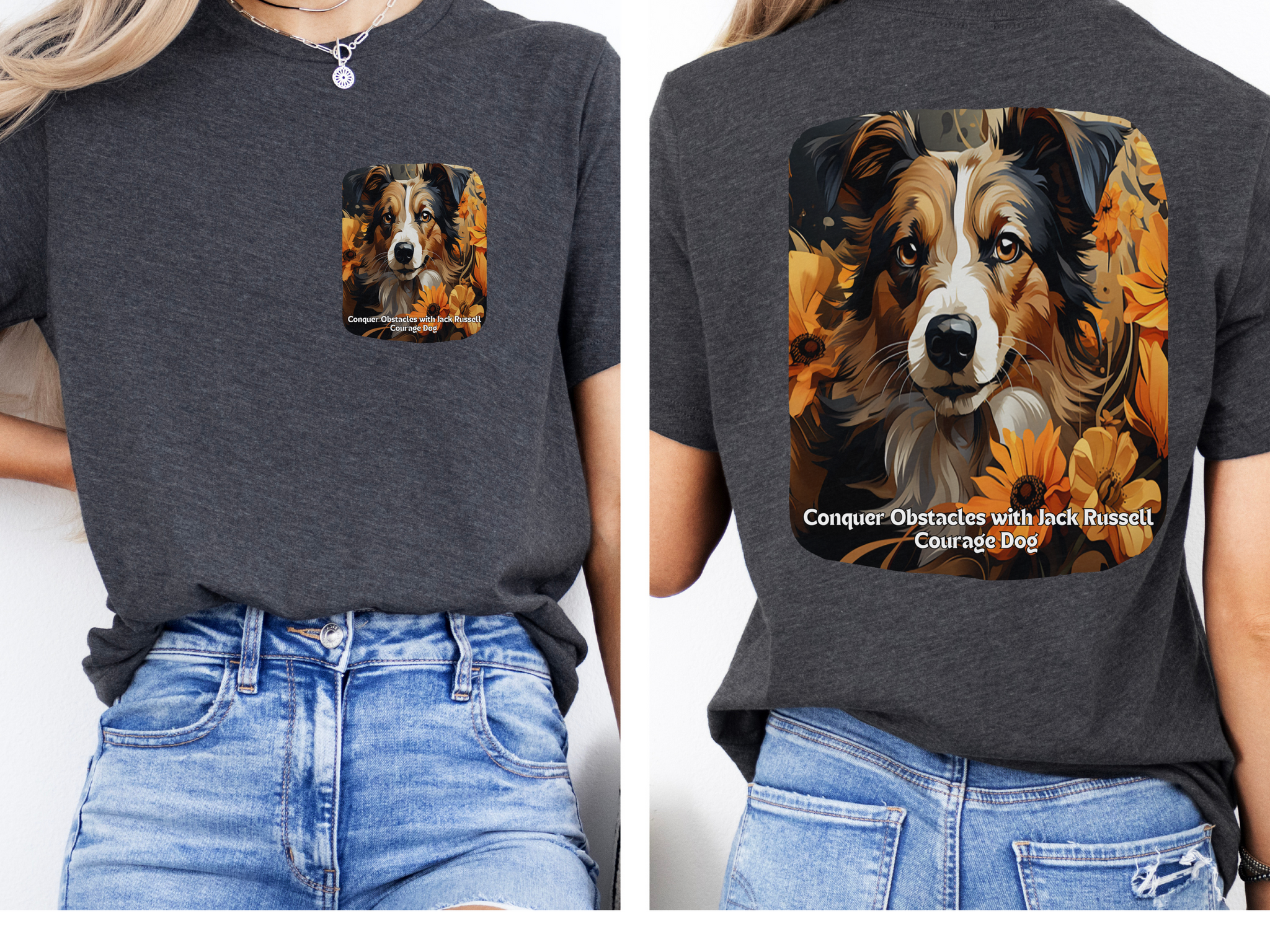Celebrate the unstoppable spirit of the Jack Russell Terrier with this sunflower-themed unisex T-shirt! Featuring the bold slogan "Conquer Obstacles with Jack Russell Courage" on the front and a dynamic full-back design of a determined Jack Russell leaping through golden sunflowers, this tee embodies the breed’s boundless energy, intelligence, and fearless attitude.