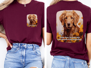 Celebrate the infectious joy of the Labradoodle with this vibrant sunflower-themed unisex T-shirt! Featuring the uplifting slogan "Chase Your Dreams with Labradoodle Enthusiasm" on the front and a cheerful full-back design of a smiling Labradoodle bounding through golden sunflowers, this tee captures the breed’s signature intelligence, playfulness, and heartwarming spirit.