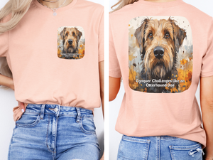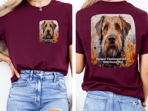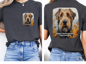 Celebrate the rugged determination of the rare Otterhound with this sunflower-themed unisex T-shirt! Featuring the bold slogan "Conquer Challenges like an Otterhound" on the front and a striking full-back design of a majestic Otterhound standing strong among golden sunflowers, this tee embodies the breed’s fearless spirit, webbed paws, and unwavering perseverance.