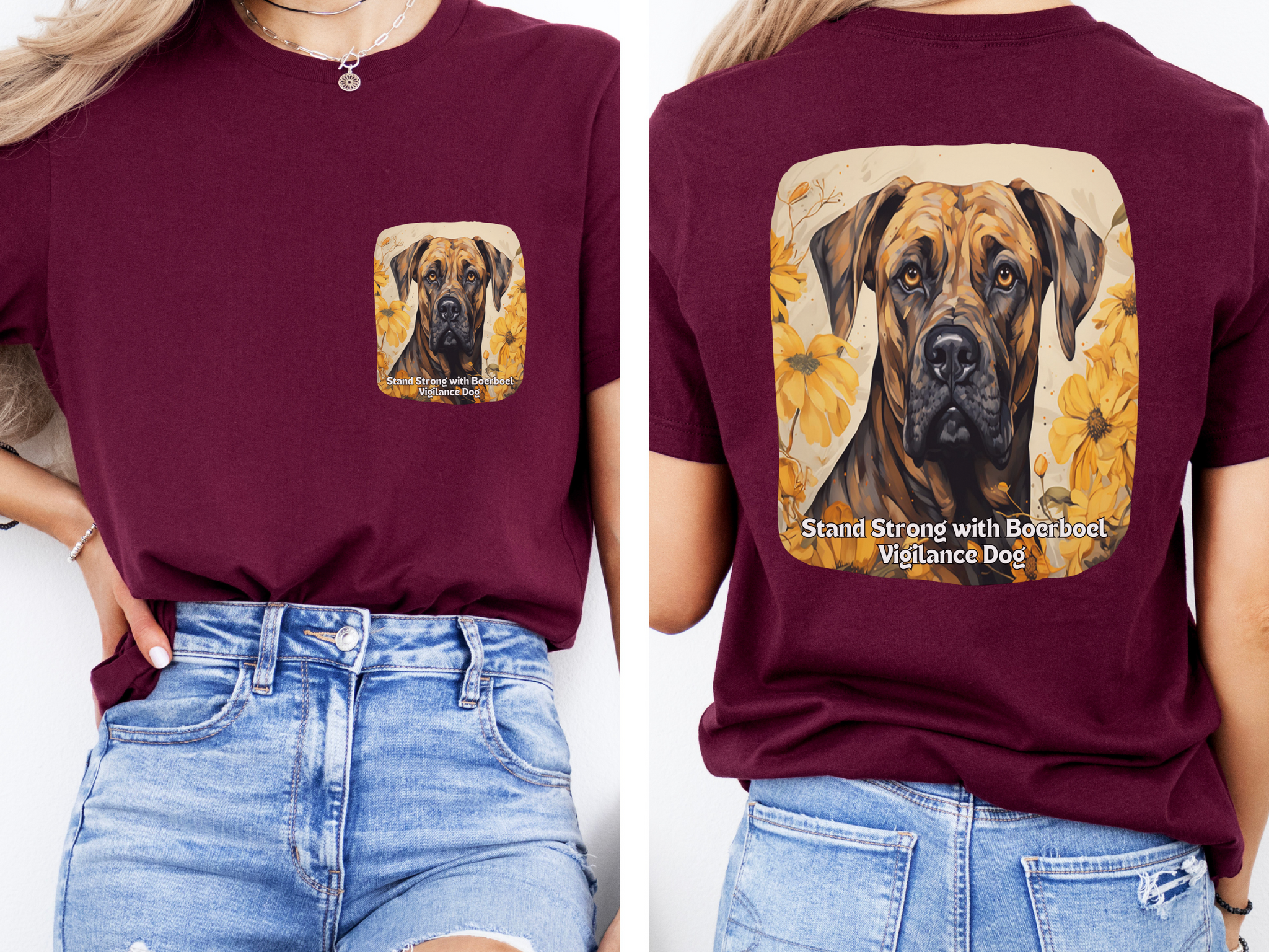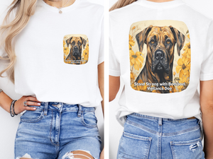 Show your strength and unwavering loyalty with this Sunflower Boerboel Dog Unisex T-Shirt! Designed with a front and back print, this tee features the powerful and protective Boerboel, surrounded by bold sunflowers, symbolizing resilience and warmth. Paired with the inspiring slogan, "Stand Strong with Boerboel Vigilance," this shirt is perfect for those who value courage, protection, and unwavering dedication. Whether you're a proud Boerboel owner or admire strong guardian breeds, this tee is a stylish and meaningful way to express your values. Wear it with pride and stand strong!