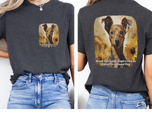 Step into confidence and elegance with this Sunflower Italian Greyhound Dog Unisex T-Shirt! Featuring a front and back design, this tee showcases the graceful and poised Italian Greyhound, surrounded by bright sunflowers, symbolizing warmth and positivity. Paired with the inspiring slogan, "Stand Out, Lead, Inspire like an Italian Greyhound Dog," this shirt is perfect for those who embrace leadership, individuality, and charm. Whether you're a proud Italian Greyhound owner or simply love stylish, meaningful apparel, this tee is a must-have. Wear it boldly and inspire those around you!