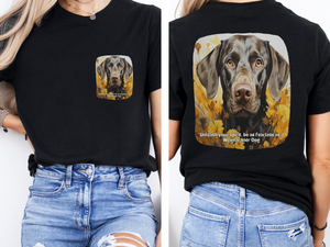 Channel the bold energy of the Weimaraner with this striking sunflower T-shirt! Featuring the empowering slogan "Unleash your spirit, be as fearless as a Weimaraner" on the front and a dynamic full-back design of a sleek Weimaraner sprinting through golden sunflowers, this tee captures the breed’s athleticism, intelligence, and unwavering confidence.