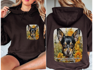 Embrace the unique charm and loving spirit of the Mexican Hairless Dog (Xoloitzcuintli) with this vibrant Sunflower Mexican Hairless Dog Unisex Hoodie! Featuring a striking design of this ancient, affectionate breed surrounded by cheerful sunflowers, this hoodie carries the uplifting slogan: "Spread Love, Inspire Happiness like a Mexican Hairless Dog" on both the front and back.