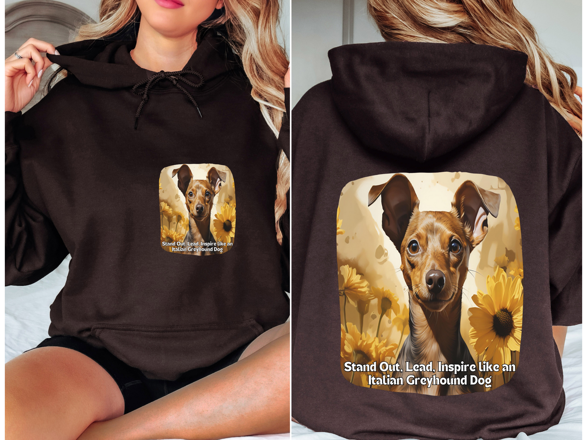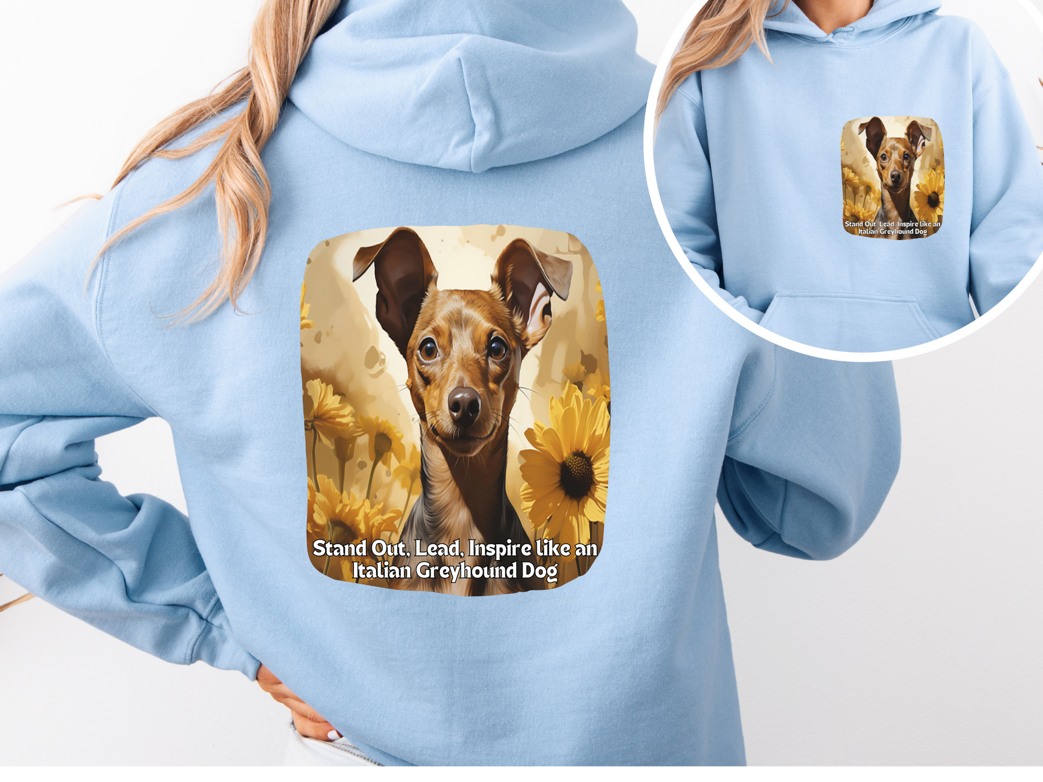 Crafted from ultra-soft, premium fabric, this hoodie is perfect for dog lovers, fashion enthusiasts, and anyone who wants to make a positive impact. Whether you're an Italian Greyhound owner, a sunflower admirer, or someone who aspires to lead with style, this hoodie is your ideal wardrobe staple.