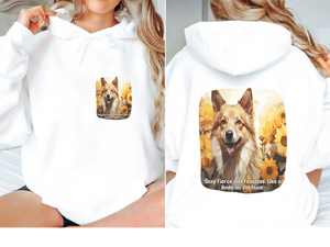 Sunflower Jindo Dog Unisex Hoodie – Stay Fierce & Fearless Like a Jindo on the Hunt