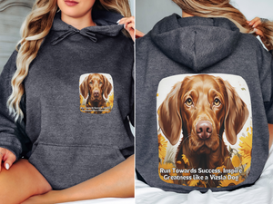 Vizsla Dog Sunflower Hoodie – Run Towards Success, Inspire Greatness – Unisex Motivational Pullover