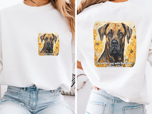 Command respect with our Boerboel Guardian Sunflower Sweatshirt, featuring the powerful slogan "Stand Strong with Boerboel Vigilance" alongside a majestic Boerboel standing guard between golden sunflowers. This heavyweight unisex pullover celebrates the South African mastiff's legendary protective instincts and unwavering loyalty.
