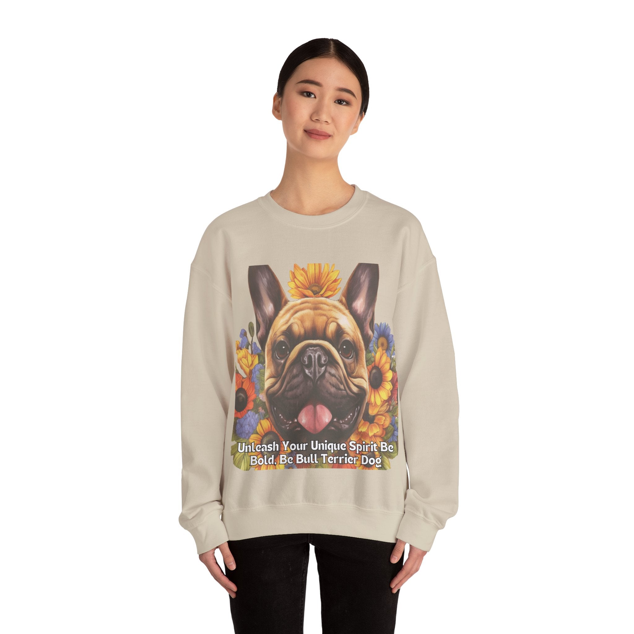 Copy of Bull Terrier Sunflower Sweatshirt – 'Unleash Your Unique Spirit' Front & Back Design