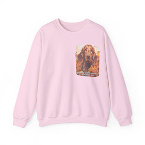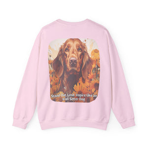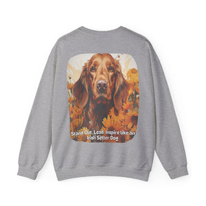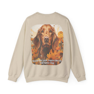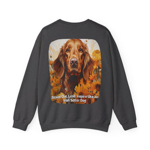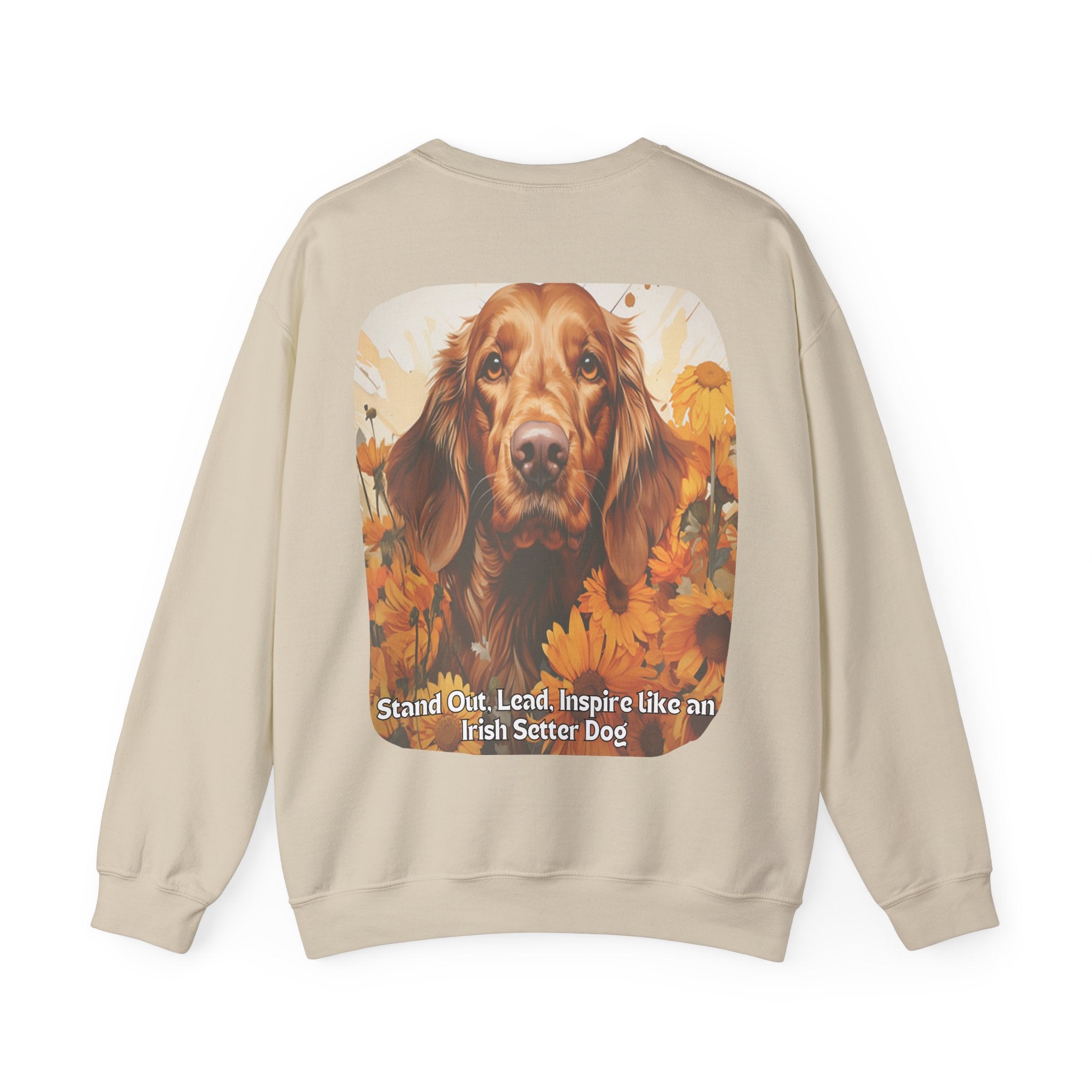 Radiate vibrant energy with our Irish Setter Spirit Sunflower Sweatshirt, featuring the motivational slogan "Stand Out, Lead, Inspire like an Irish Setter" alongside a stunning red setter in motion through a golden sunflower field. This premium unisex pullover captures the breed's fiery elegance, boundless enthusiasm, and natural leadership in a design that shines as bright as your Setter's personality.