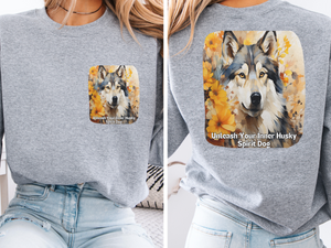 Embrace your wild, adventurous side with this Sunflower & Husky Spirit Dog Unisex Sweatshirt! Featuring a stunning front and back design, this cozy pullover pairs a radiant sunflower with a majestic Siberian Husky and the inspiring slogan: "Unleash your inner Husky spirit." Perfect for Husky lovers, outdoor enthusiasts, and free spirits who embody the Husky's energy, loyalty, and love for adventure.