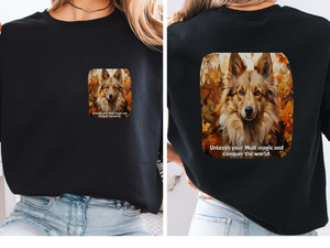 Channel your inner strength and joy with this Sunflower & Mudi Dog Unisex Sweatshirt! Featuring a bold front and back design, this cozy pullover showcases a radiant sunflower alongside a spirited Mudi dog, paired with the empowering slogan: "Unleash your Mudi magic and conquer the world." Perfect for Mudi lovers, dog enthusiasts, and anyone who believes in the magic of determination and positivity.