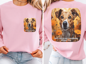 Unstoppable Whippet Dog Sweatshirt - 'Swift & Strong' Sunflower Design - Unisex Crewneck Pullover
