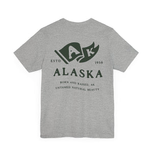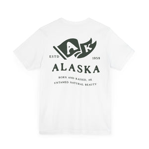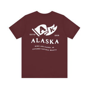 "Born in the Wild, Raised in the Cold." Show your Alaska pride with this Born & Raised T-shirt, designed for those who embrace the rugged beauty of the Last Frontier. Featuring a bold front and back design, this tee is perfect for Alaskans who take pride in their home state. Made from soft, durable fabric, it’s great for everyday wear, outdoor adventures, or as a thoughtful gift for any proud Alaskan. Stay wild, stay free, and represent Alaska in style!