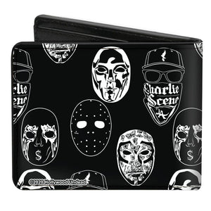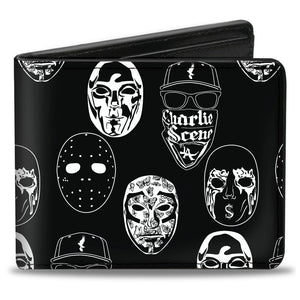 BI-FOLD WALLET - HOLLYWOOD UNDEAD MASK ICONS SCATTERED BLACK WHITE