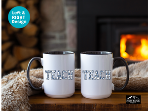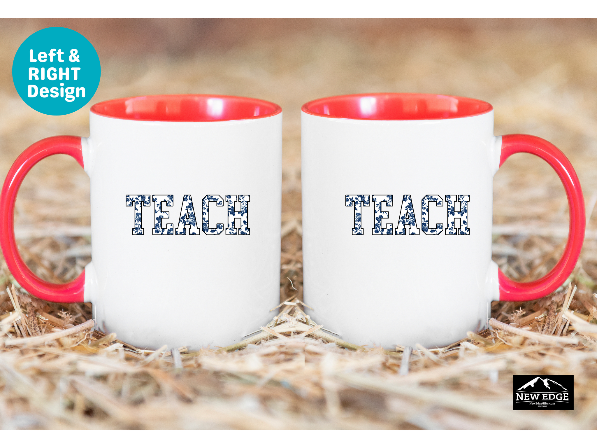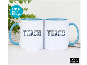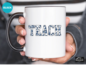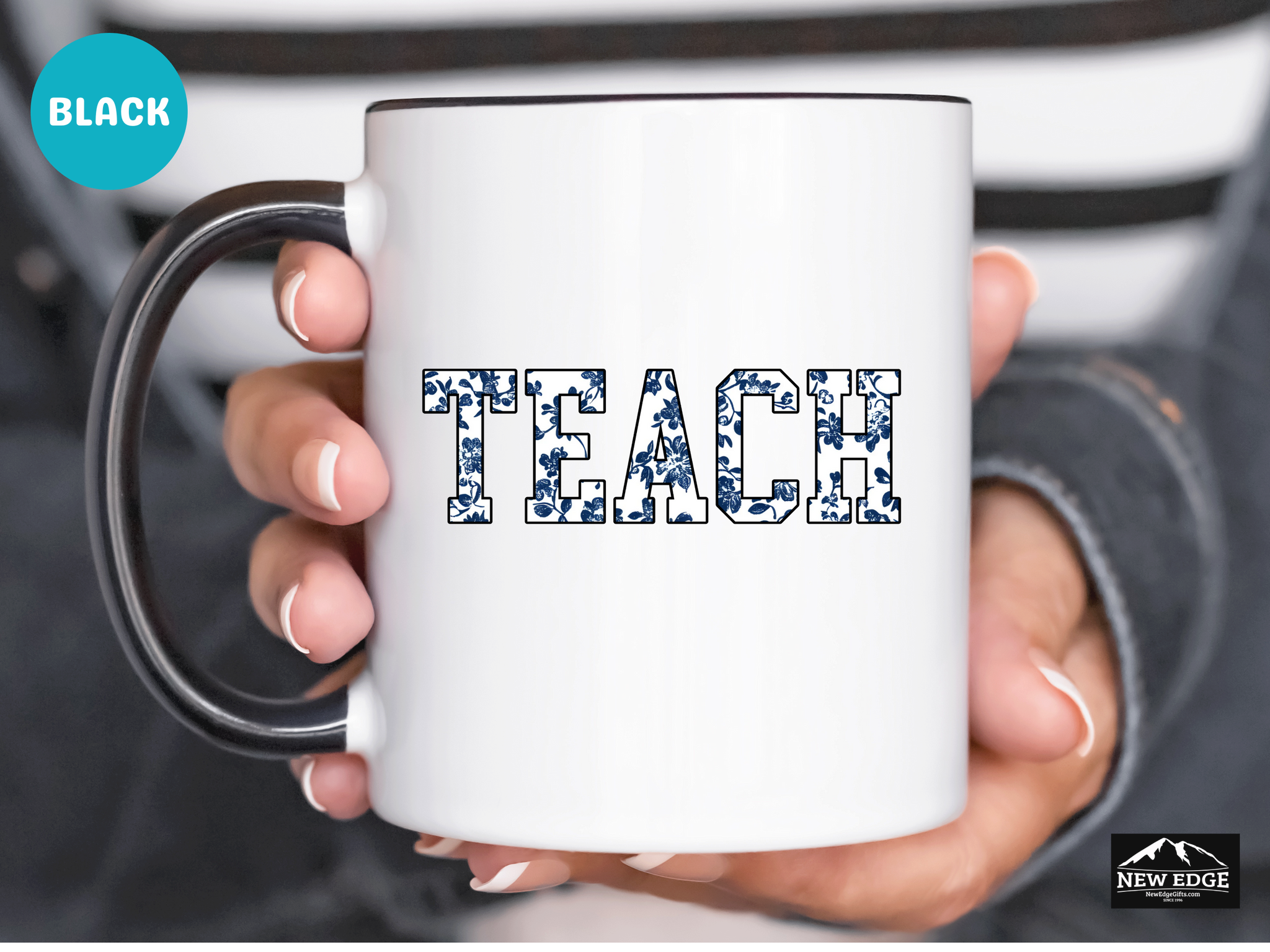 Blue Floral TEACH Letters Coffee Mug – 11oz & 15oz Accent Mug – Elegant Teacher Appreciation Gift – Stylish Floral Teacher Mug for Work or Home