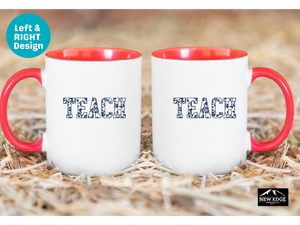 Treat your favorite teacher to a touch of beauty with this Blue Floral TEACH Letters Accent Mug, available in 11oz and 15oz sizes. Featuring delicate blue floral designs wrapped around bold TEACH lettering, this mug blends sophistication with heartwarming charm—perfect for brightening up any classroom or coffee break.