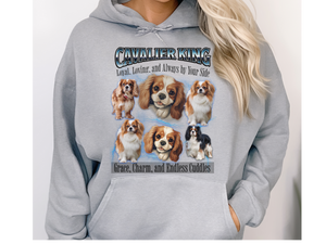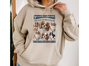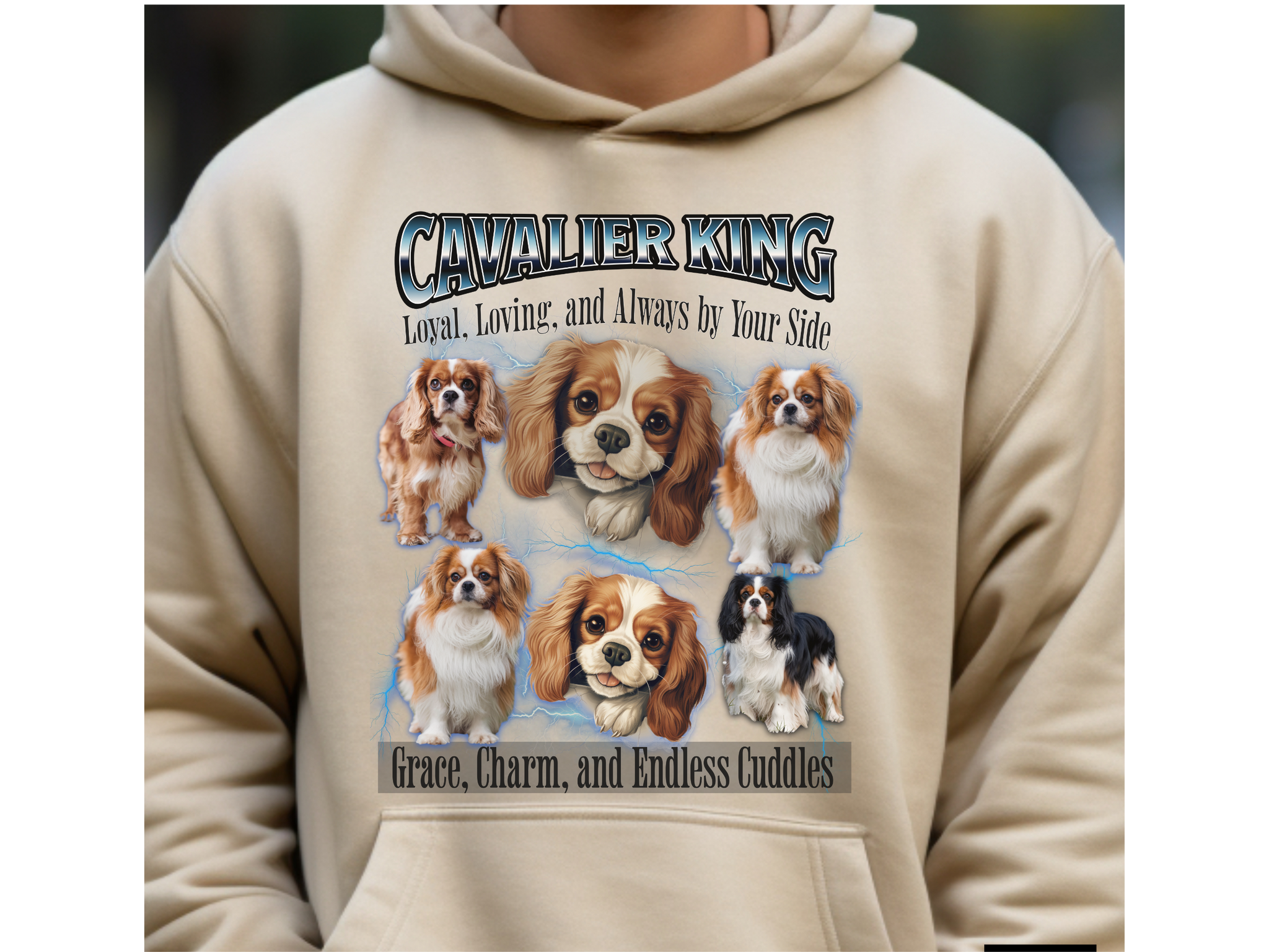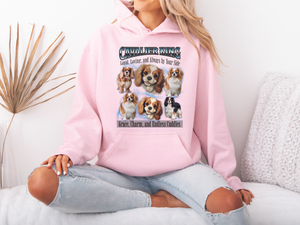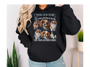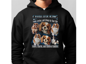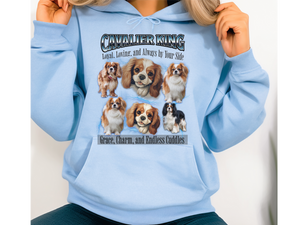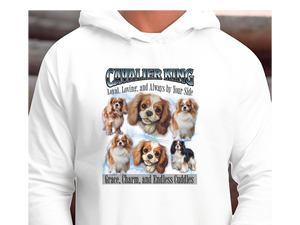 Crafted from a soft cotton-poly blend, this hoodie offers a relaxed unisex fit, ensuring comfort whether you're on a brisk walk or lounging at home. Whether you're a proud Cavalier parent or an admirer of their dignified nature, this pullover is a stylish way to showcase your affection for the breed.