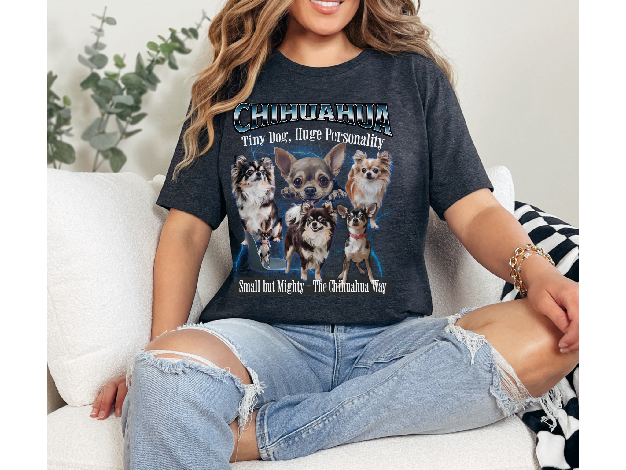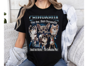 Small in size, mighty in attitude — that’s the Chihuahua Way. This Unisex Bootleg Collage T-Shirt captures the fierce spirit and sass of the Chihuahua in a bold, vintage-inspired collage design. Whether your pup rules your purse or your heart, this shirt is made for those who know big personality comes in a tiny package.