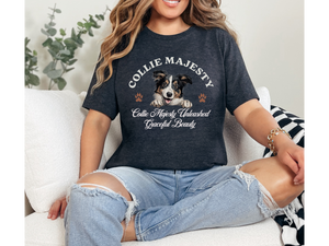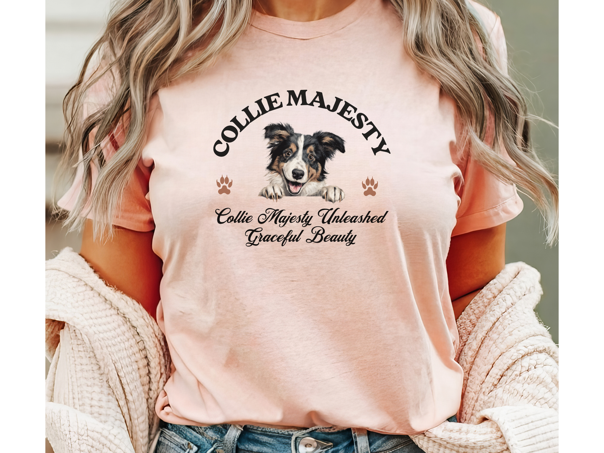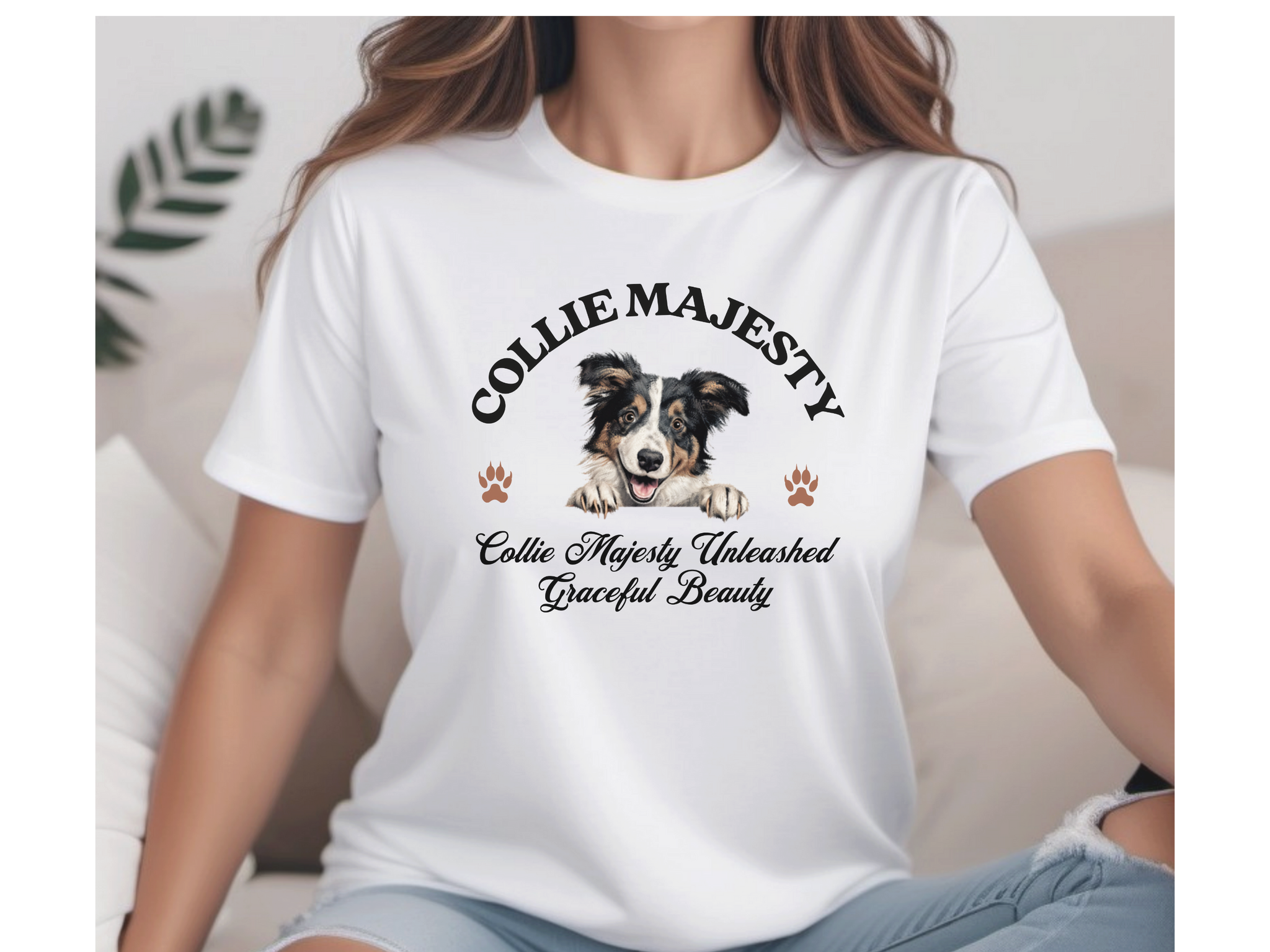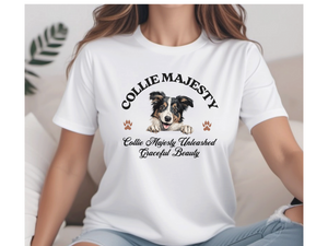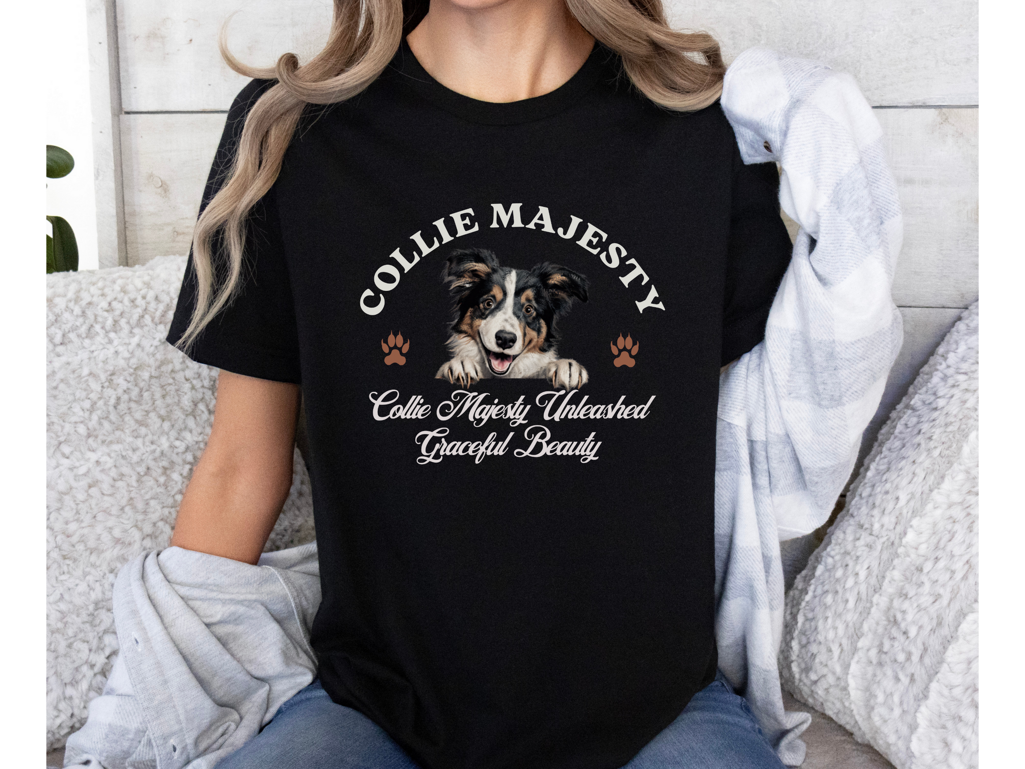 Collie Majesty T-Shirt – Unisex Dog Lover Tee with “Collie Majesty Unleashed, Graceful Beauty” Slogan | Elegant Herding Dog Gift