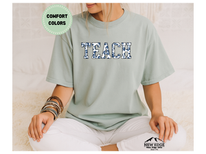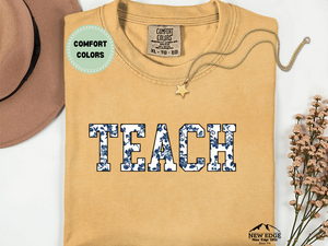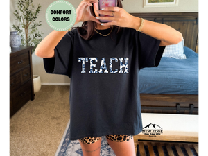 Brighten up the classroom with this Comfort Colors Floral “Teach” T-Shirt, designed for educators who love style and comfort. Featuring a cheerful floral print with the word Teach, this shirt is the perfect blend of casual and meaningful. Made from high-quality Comfort Colors fabric, it offers a soft, relaxed fit that’s perfect for teaching, running errands, or enjoying the weekend. Ideal for everyday wear or as a thoughtful teacher appreciation gift, this tee is sure to become a favorite.