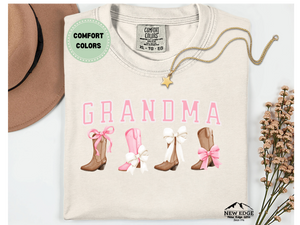 • “GRANDMA” graphic with boots and bow accents