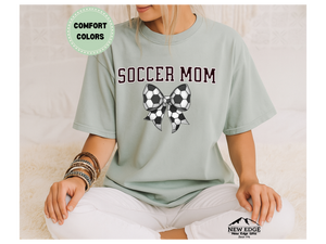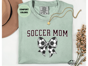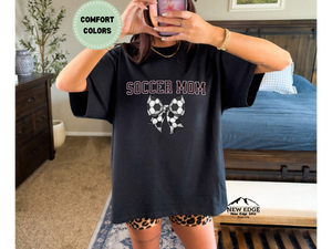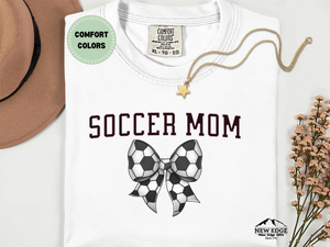 Comfort Colors Soccer Mom T-Shirt with Soccer Ball Bow | Game Day Sports Graphic Tee