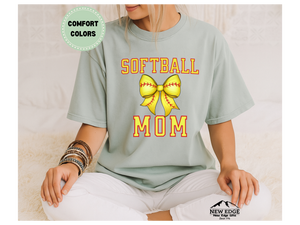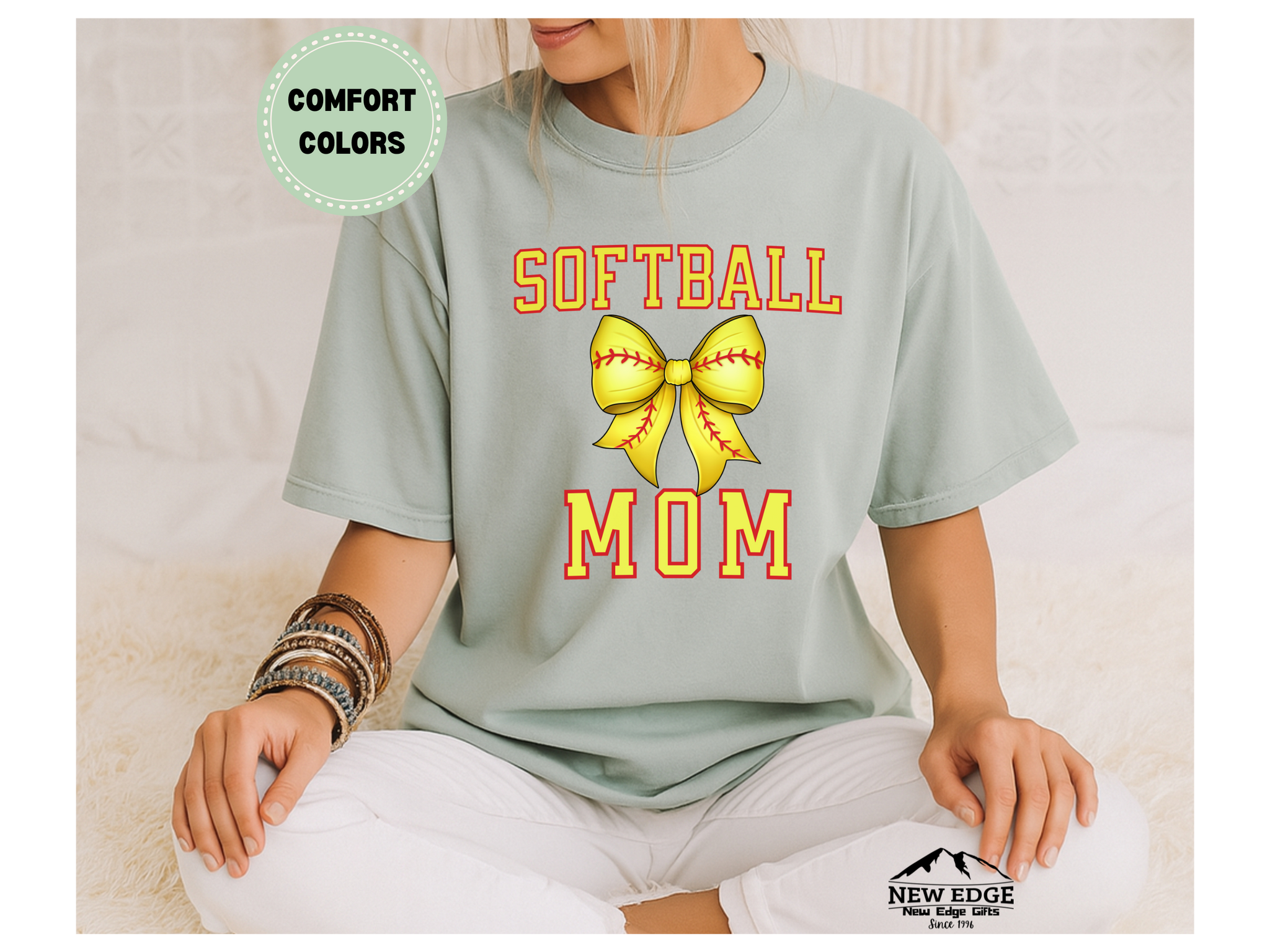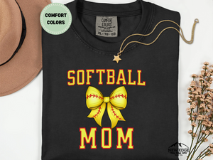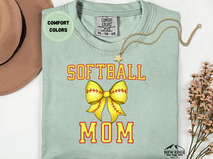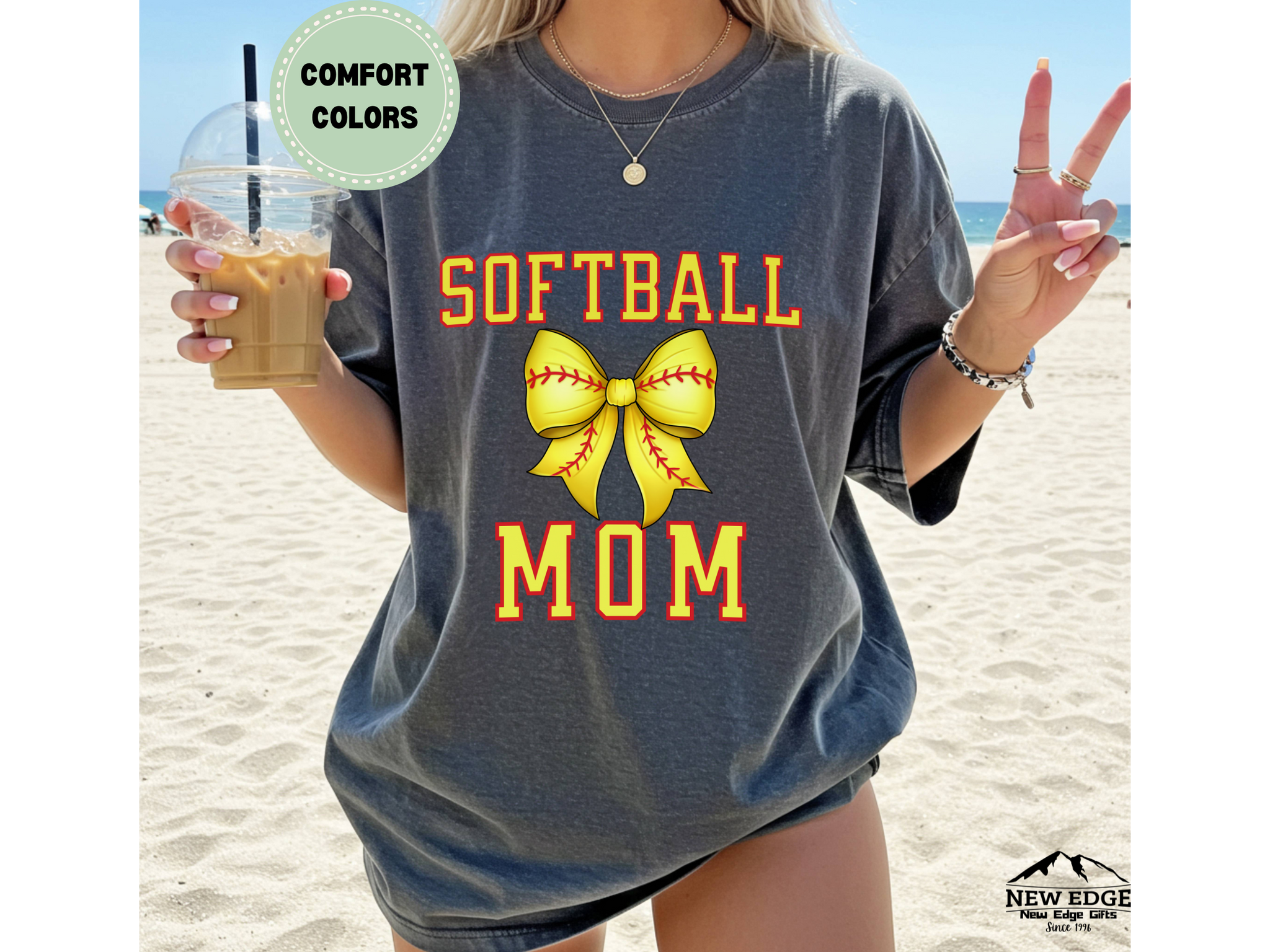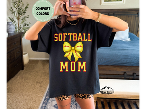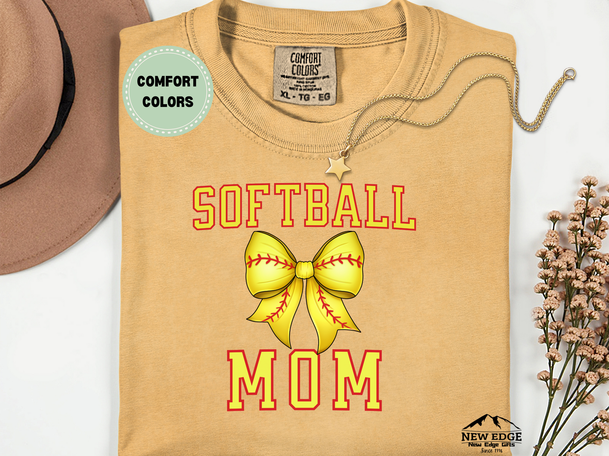 Comfort Colors Softball Mom T-Shirt with Bow | Cute Game Day Graphic Tee | Softball Spirit Wear for Moms