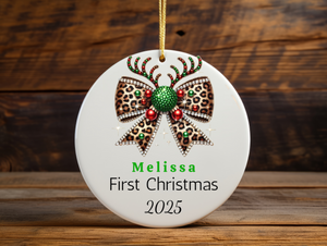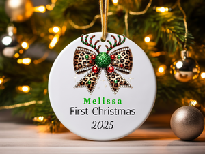 This personalized ornament features a beautiful bow accent, making it a perfect baby shower gift or family keepsake. Personalize it with your baby’s name and year to create a meaningful decoration for your Christmas tree or to give as a thoughtful holiday gift.