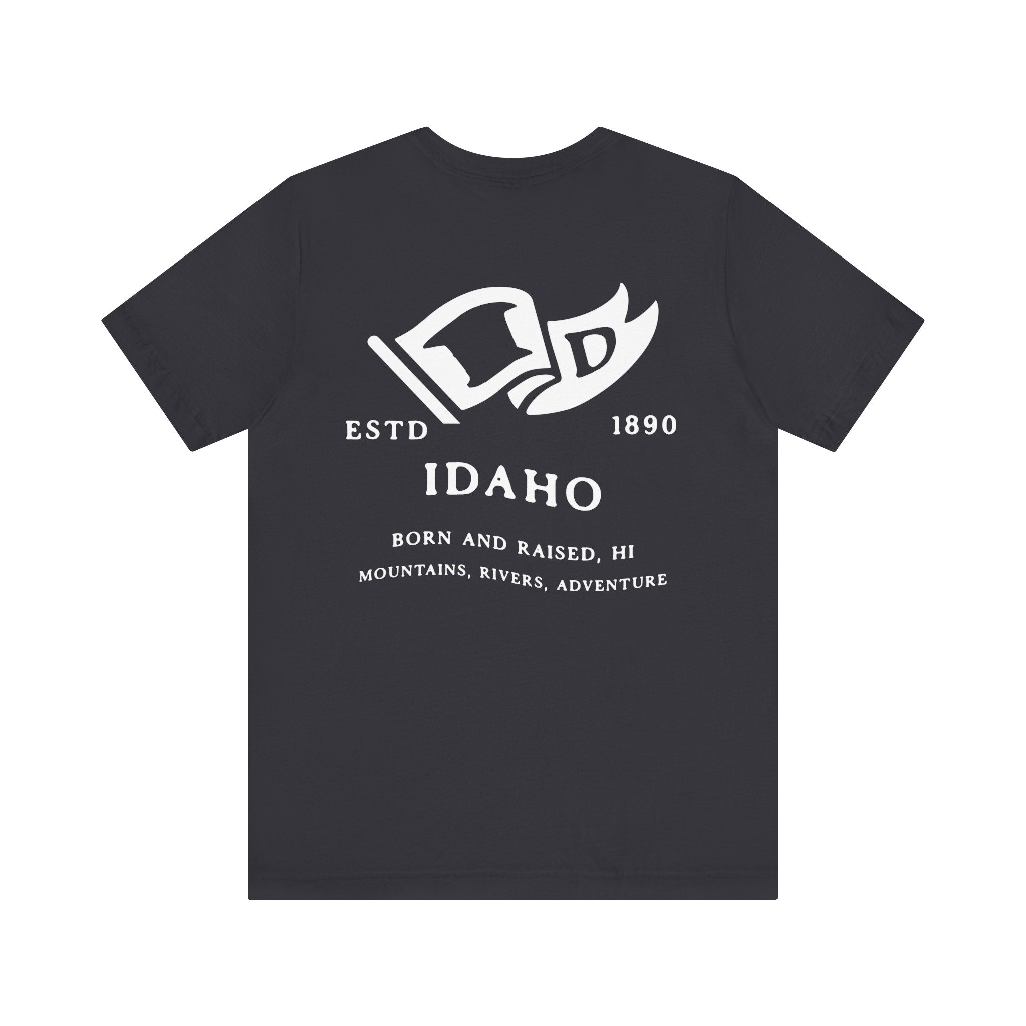 Rooted in the Land, Raised in the Wild." Show your Idaho pride with this Born & Raised T-shirt, featuring a bold front and back design that celebrates your deep connection to the Gem State. Made from soft, durable fabric, this tee is perfect for everyday wear—whether you're hiking the Sawtooths, exploring Boise, or enjoying Idaho’s great outdoors. A must-have for proud Idahoans and a great gift for anyone who calls Idaho home